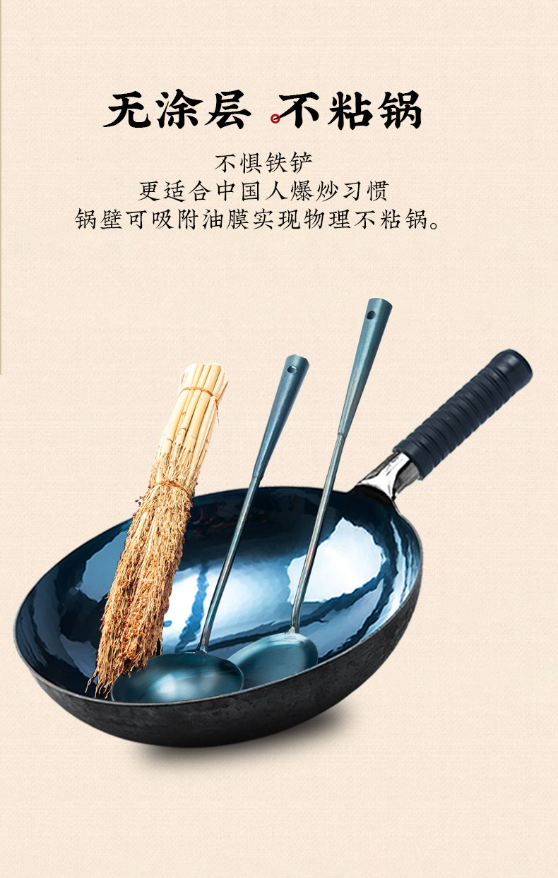 正品炒菜锅手工铁锅官方旗舰传统老式家用无涂层不粘锅产地章丘