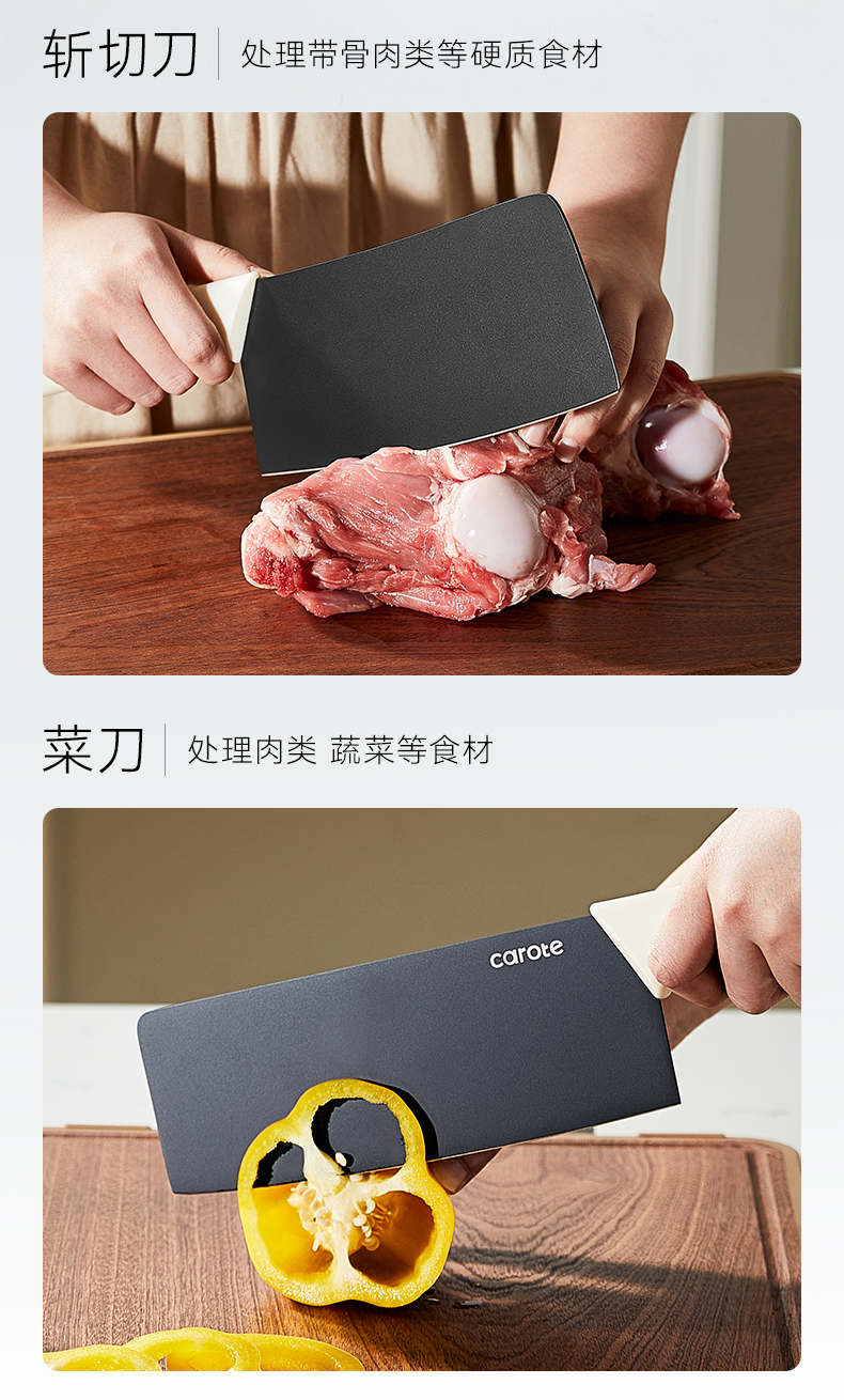 卡罗特抗菌钛刀具套装组合厨房全套菜刀菜板二合一家用菜刀板套装