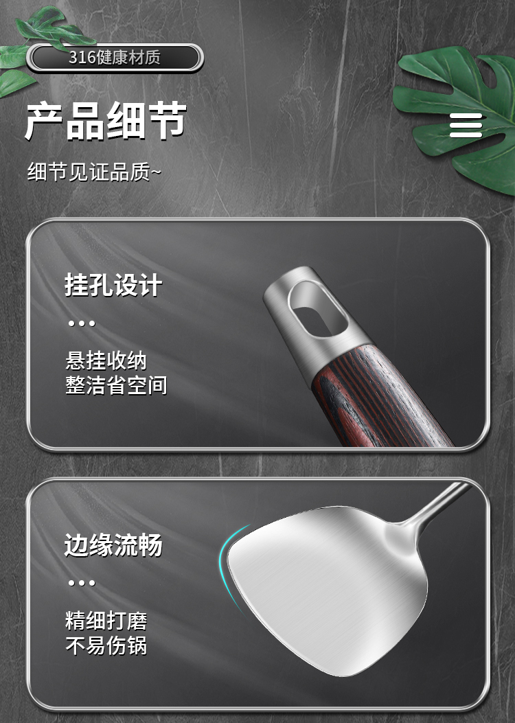 锅铲套装316不锈钢厨房炒菜铲子...
