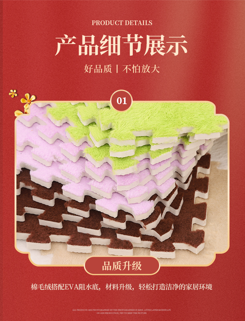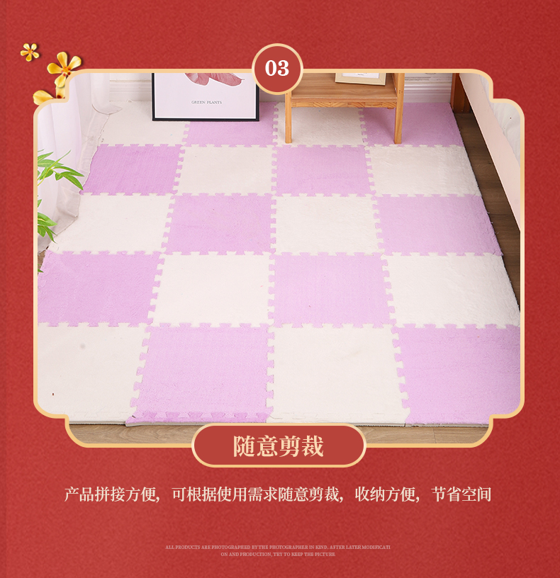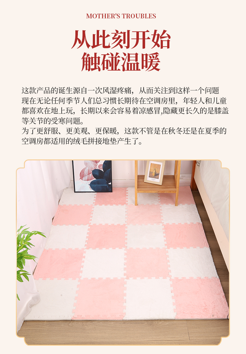 毛绒床边地毯卧室全铺ins风儿童房间家用爬爬垫泡沫拼接爬行地垫