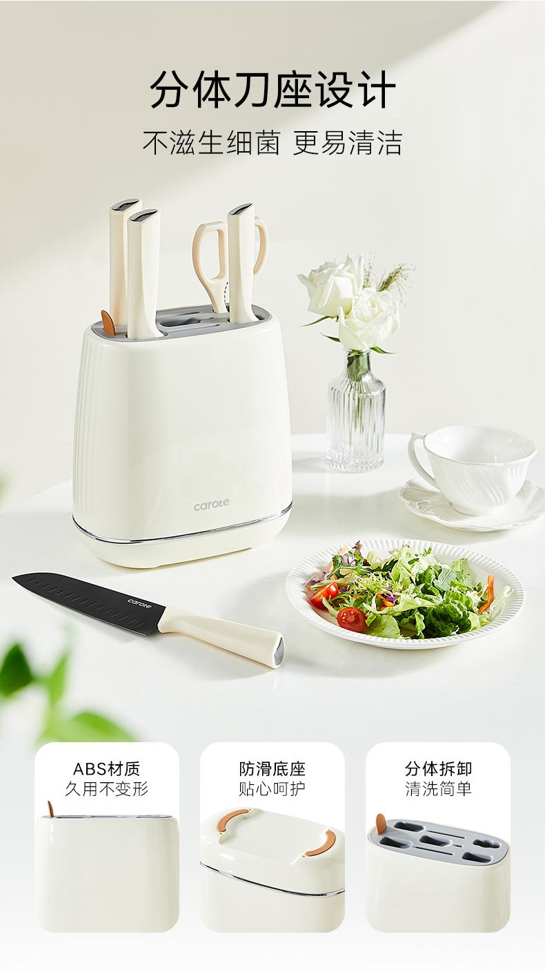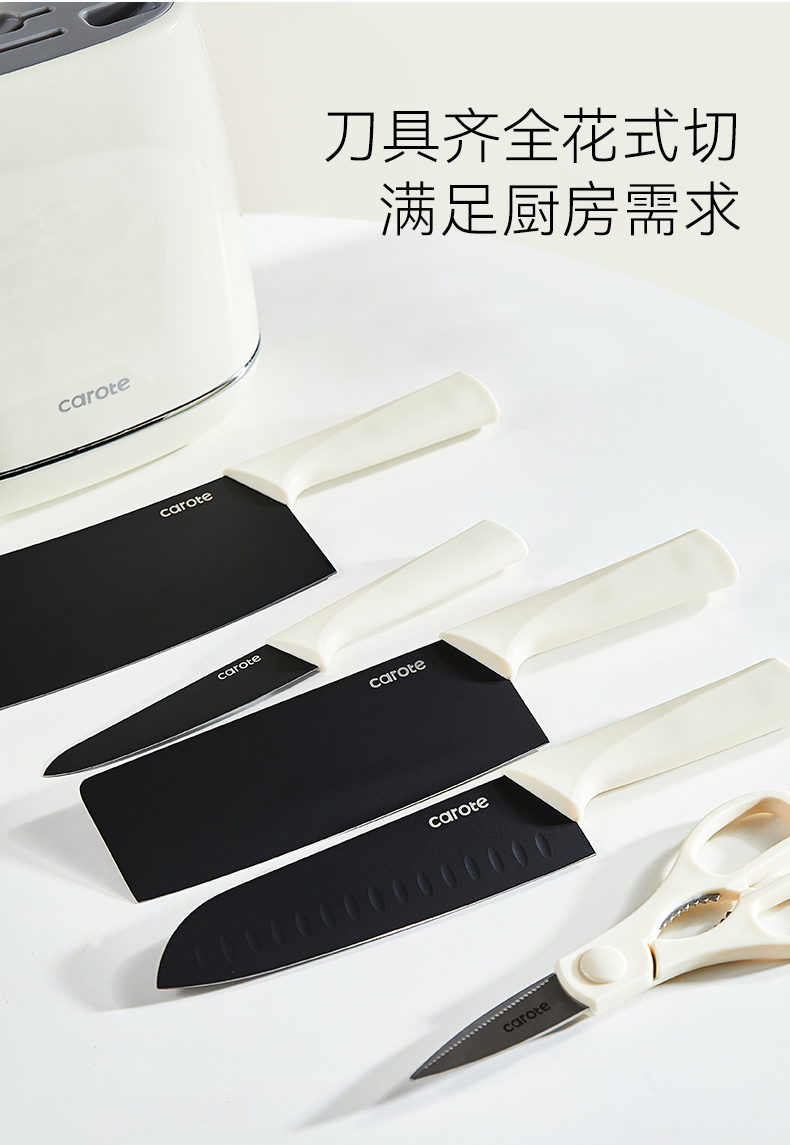 卡罗特抗菌钛刀具套装组合厨房全套菜刀菜板二合一家用菜刀板套装