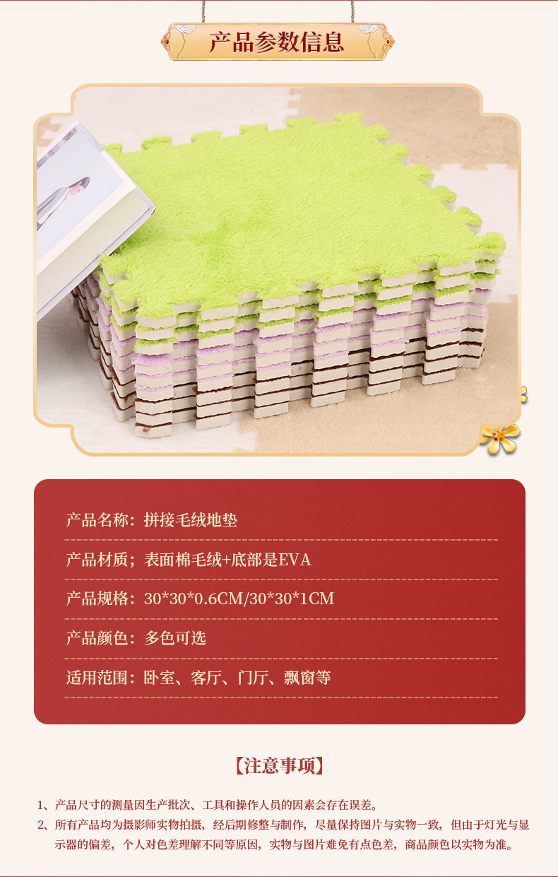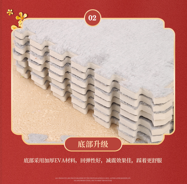 毛绒床边地毯卧室全铺ins风儿童房间家用爬爬垫泡沫拼接爬行地垫